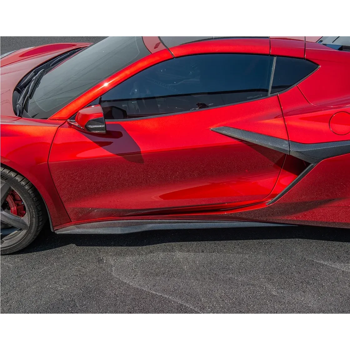 4PCS Car Side Skirts For Corvette C8 2023-2024 Z06 Fit With Wide Body Version Glossy Black Carbon Fiber Style Car Accessories