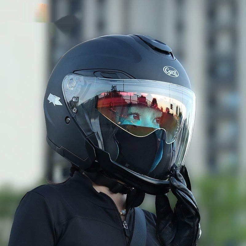 Summer Men's Motorcycle Half Three-quarter Helmet Men's All-season Double Visor