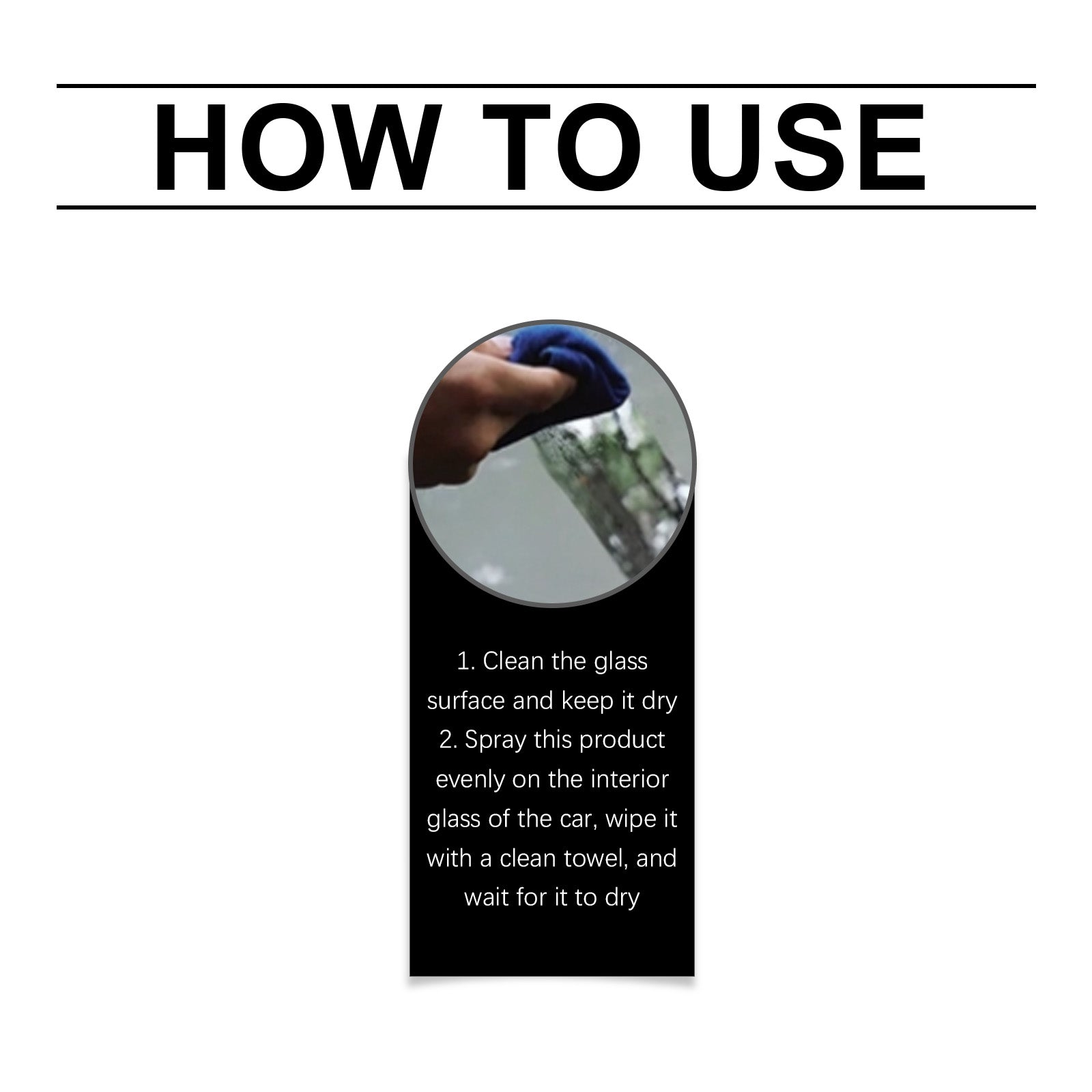 Our car glass anti-fogging agent contains disodium EDTA and sodium bicarbonate. It can ensure that the glass is clear without water stains and improve driving safety. A hydrophobic layer is formed on the surface of the glass to effectively prevent the condensation of water droplets and improve the quality of vision. Its use method is very simple: 1. Clean the glass surface and keep it dry 2. Spray the product evenly on the glass inside the car, wipe it with a clean towel, and wait for it to dry. And it can prevent water stains from blocking the glass, improve visibility and clear vision.
