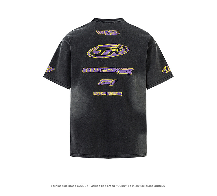 Washed Distressed Motorcycle Faded T-Shirt Men's Loose Base Layer