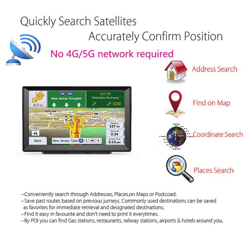 2. Professional Truck mode ,GPS will automatically tell you the length, width, height, and weight restrictions