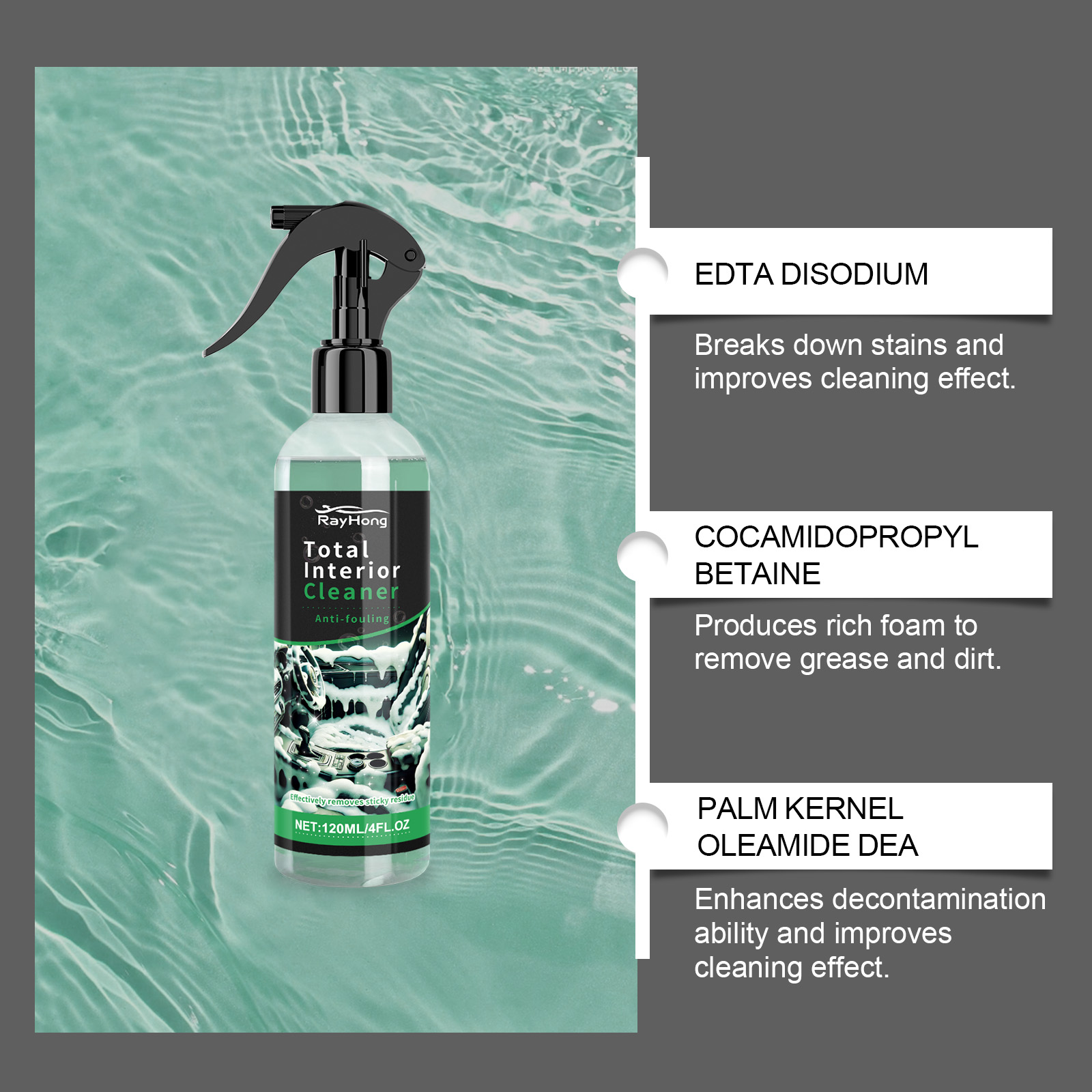 Rayhong Car Interior Cleaner, Seat Ceiling Instrument Panel Wash Free Decontamination Foam Cleaner